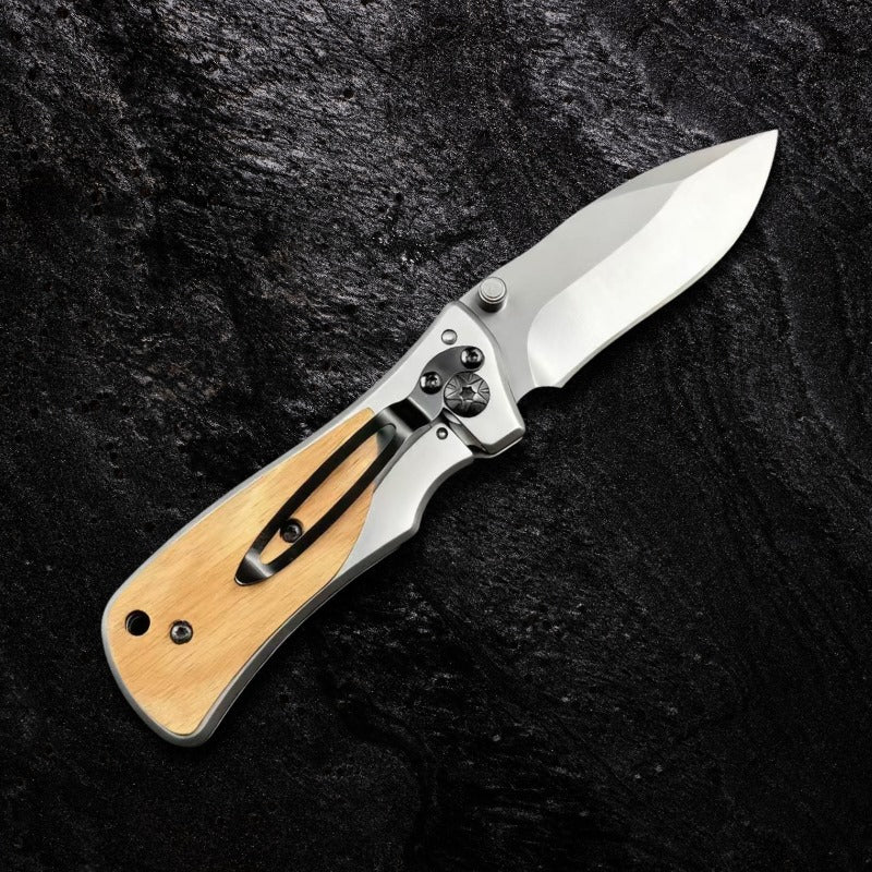 Canivete Personalizado Nogueira Utilitário Profissional Aço Inox com Clip