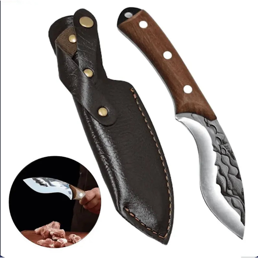 Faca Curvo Kukri Fulltang Sobrevivência C/ Bainha De Couro FC-12
